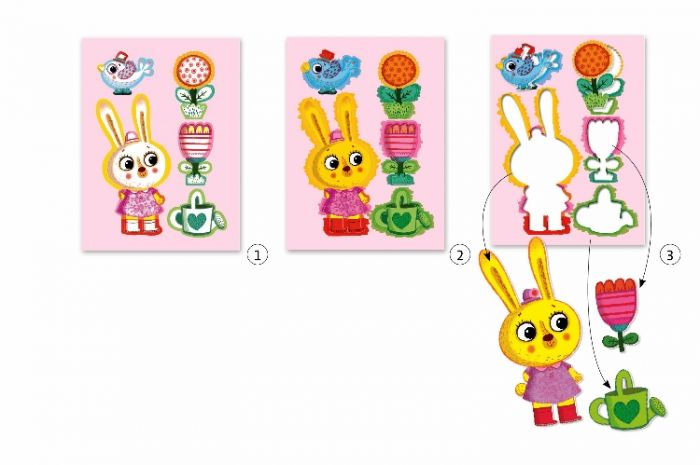 6 tavole con sagome semplici e belle, da colorare con pennarelli grandi. Le sagome vengono poi staccate dalle tavole e il risultato è sempre bello anche se si è usciti dai bordi!